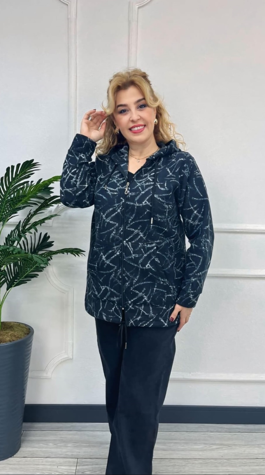 Büyük Beden Ceket Kapşonlu Lacivert/Mavi