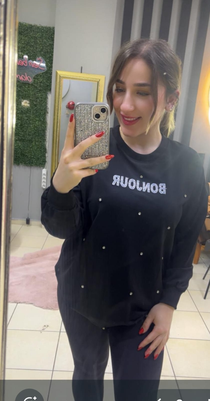 Kadın Taş Detaylı Siyah Sweat