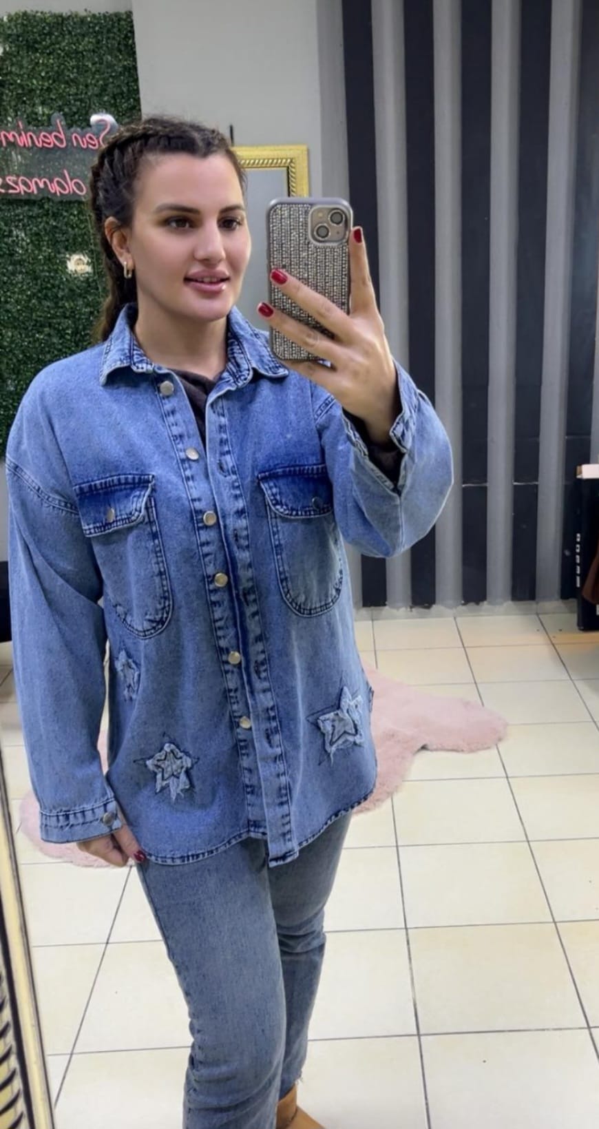 Yıldız Taşlı Klasik Yaka Jean Ceket